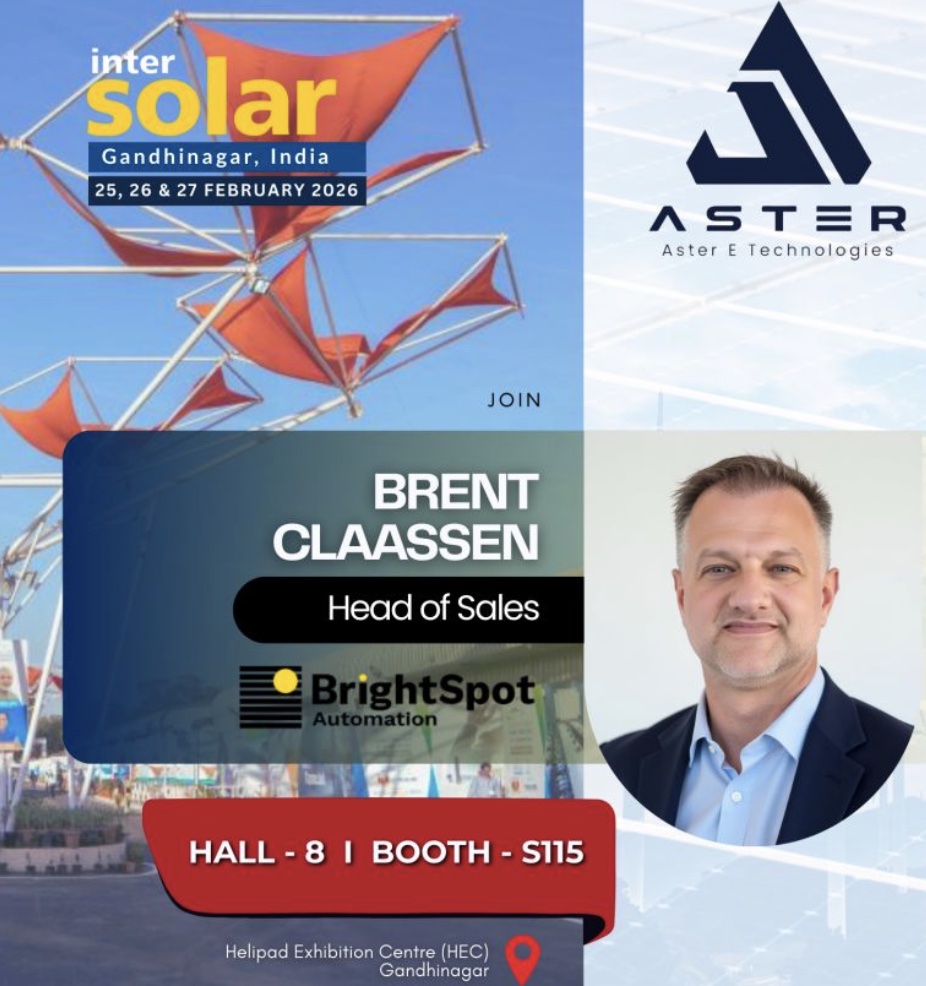 Brent Claassen, Head of Sales, will be exhibiting in the booth of BrightSpot’s Indian Sales Representative, Aster e Technologies, at the Renewable Energy India Expo & RenewX 2025. 📍 Hall 11 | Booth R-378📅 30, 31 October & 1 November 2025📌 India Expo Mart, Greater Noida